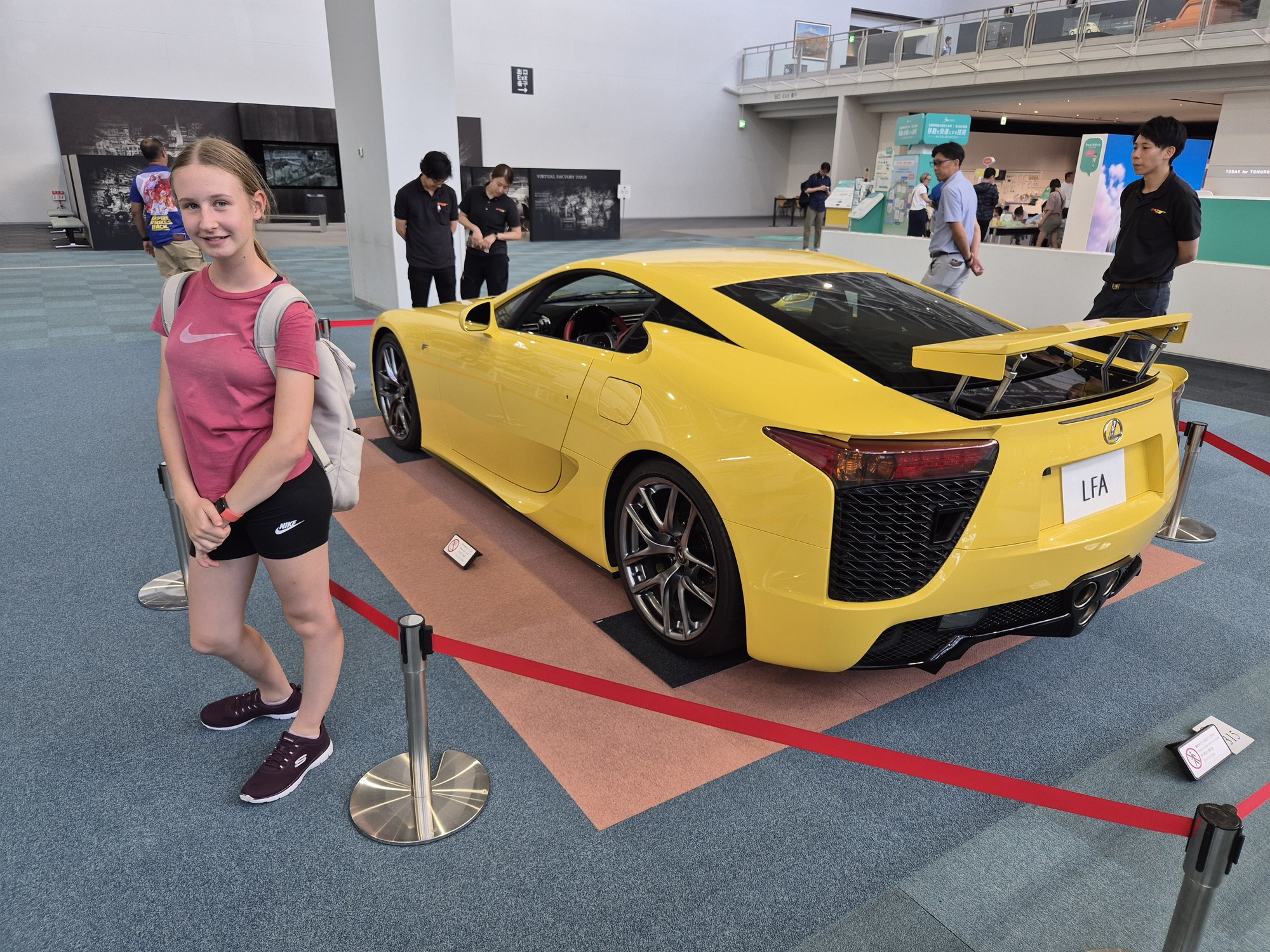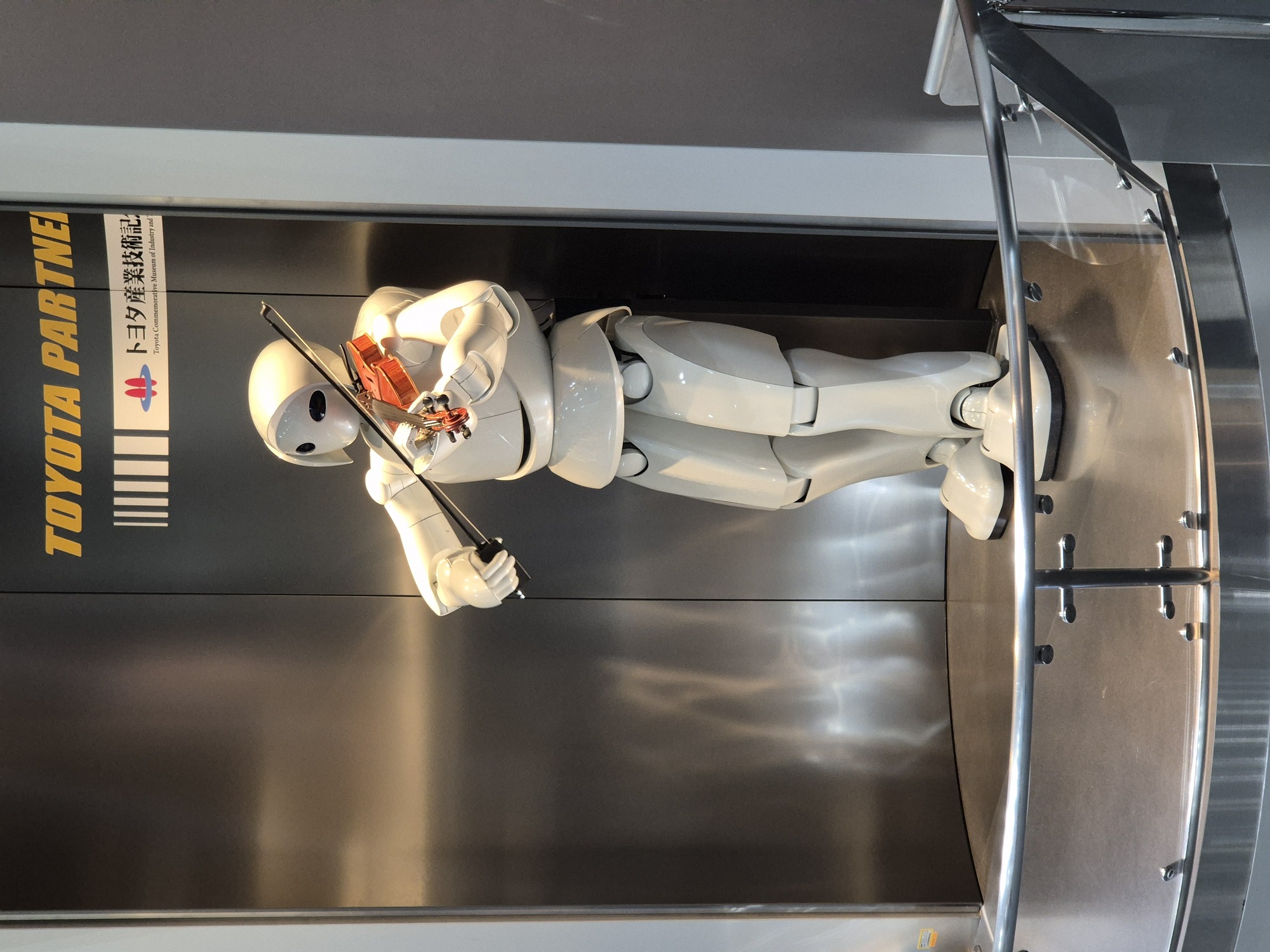 Poleg avtomobilov, lahko vidimo še delujočo stiskalnico za izdelavo karoserije in robotske roke, ki varijo posamezne dele. Ko zaključimo z ogledom, poslušamo še Toyotinega humanoidnega robota pri igranju violine.