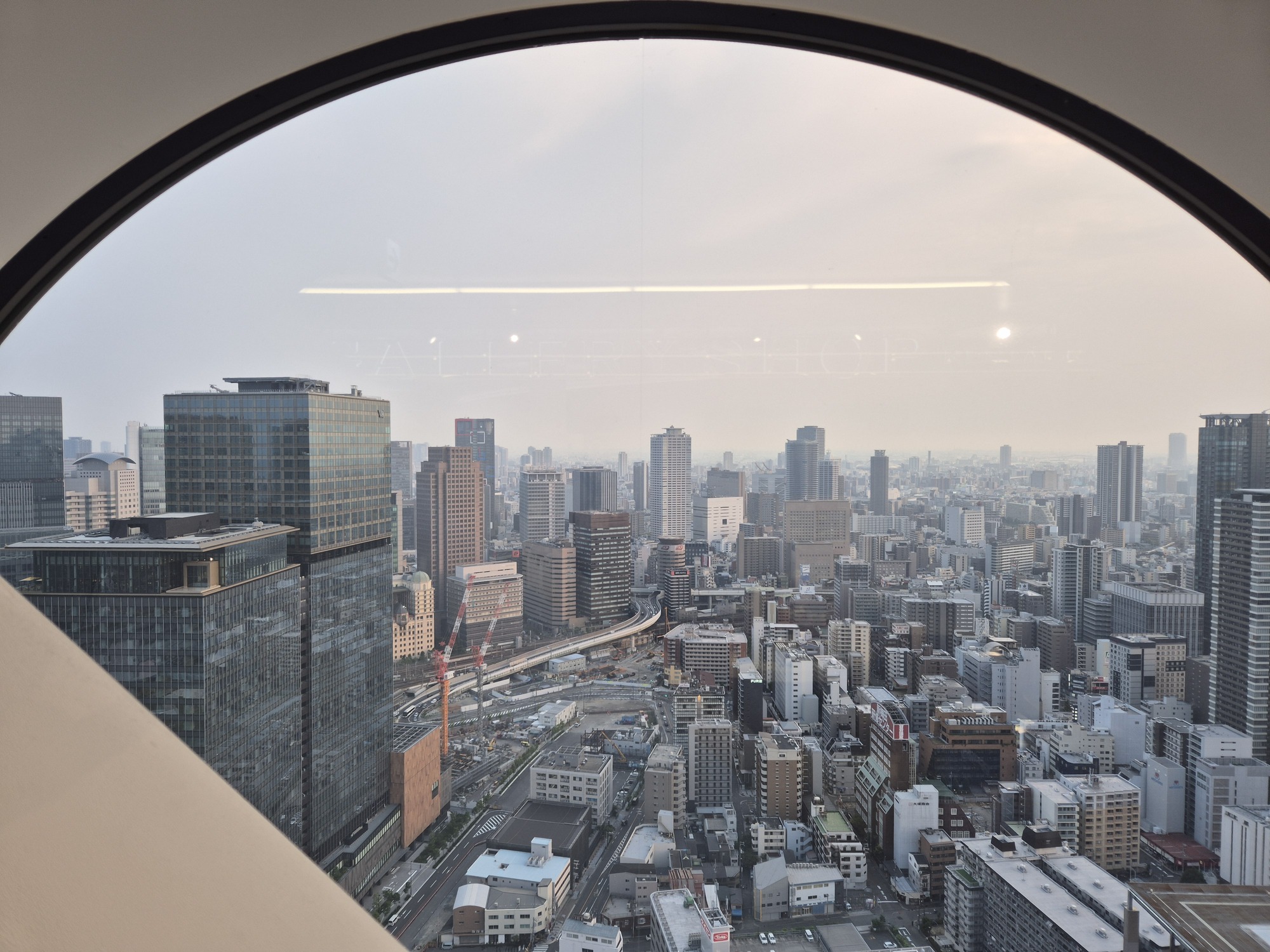 V poslovni četrti Umeda smo se povzpeli na 2, ki sta povezana z mostom. Iz steklenega dvigala, ki se hitro vzpenja, mesto vidiš iz čisto druge perspektive.