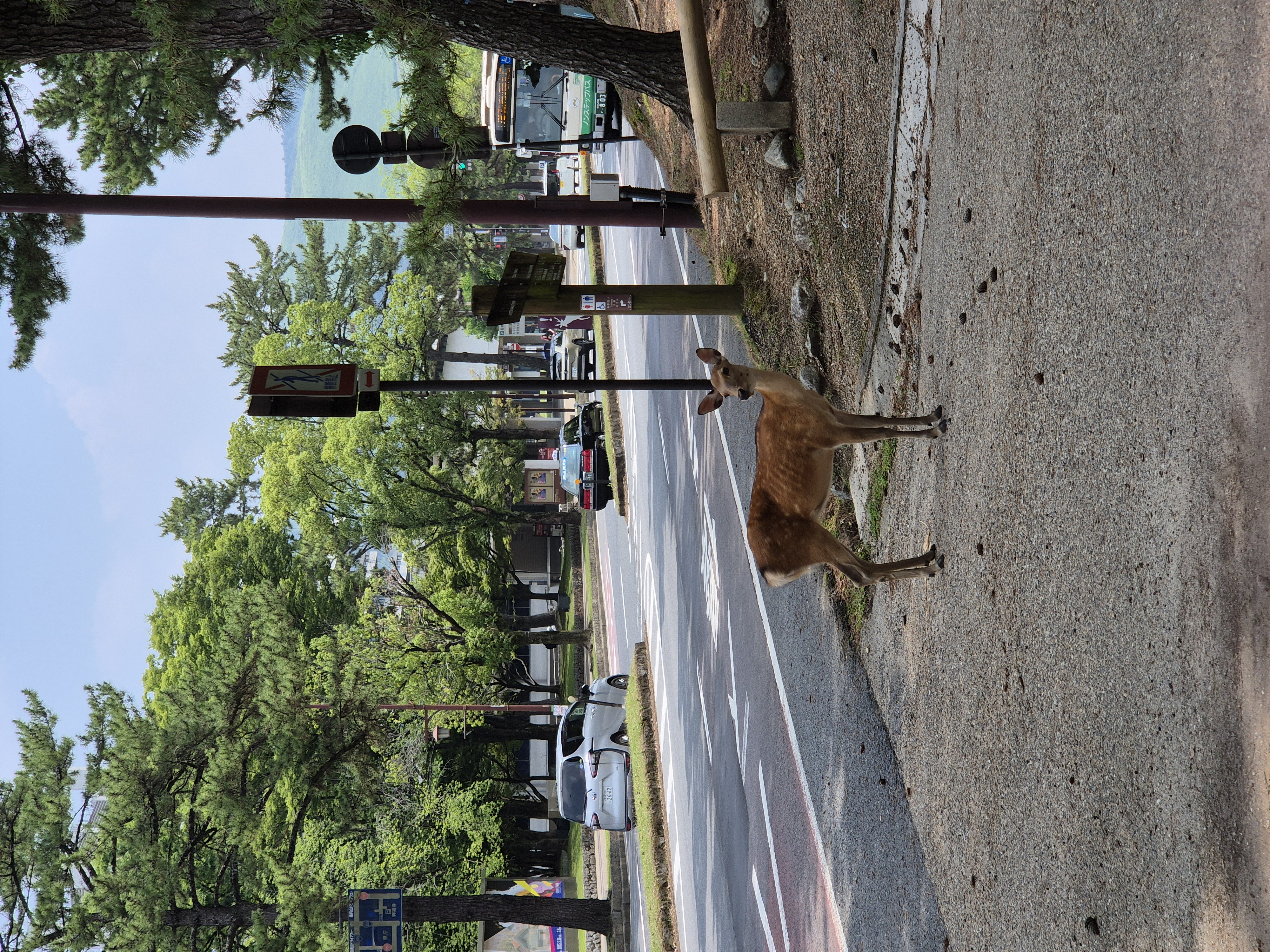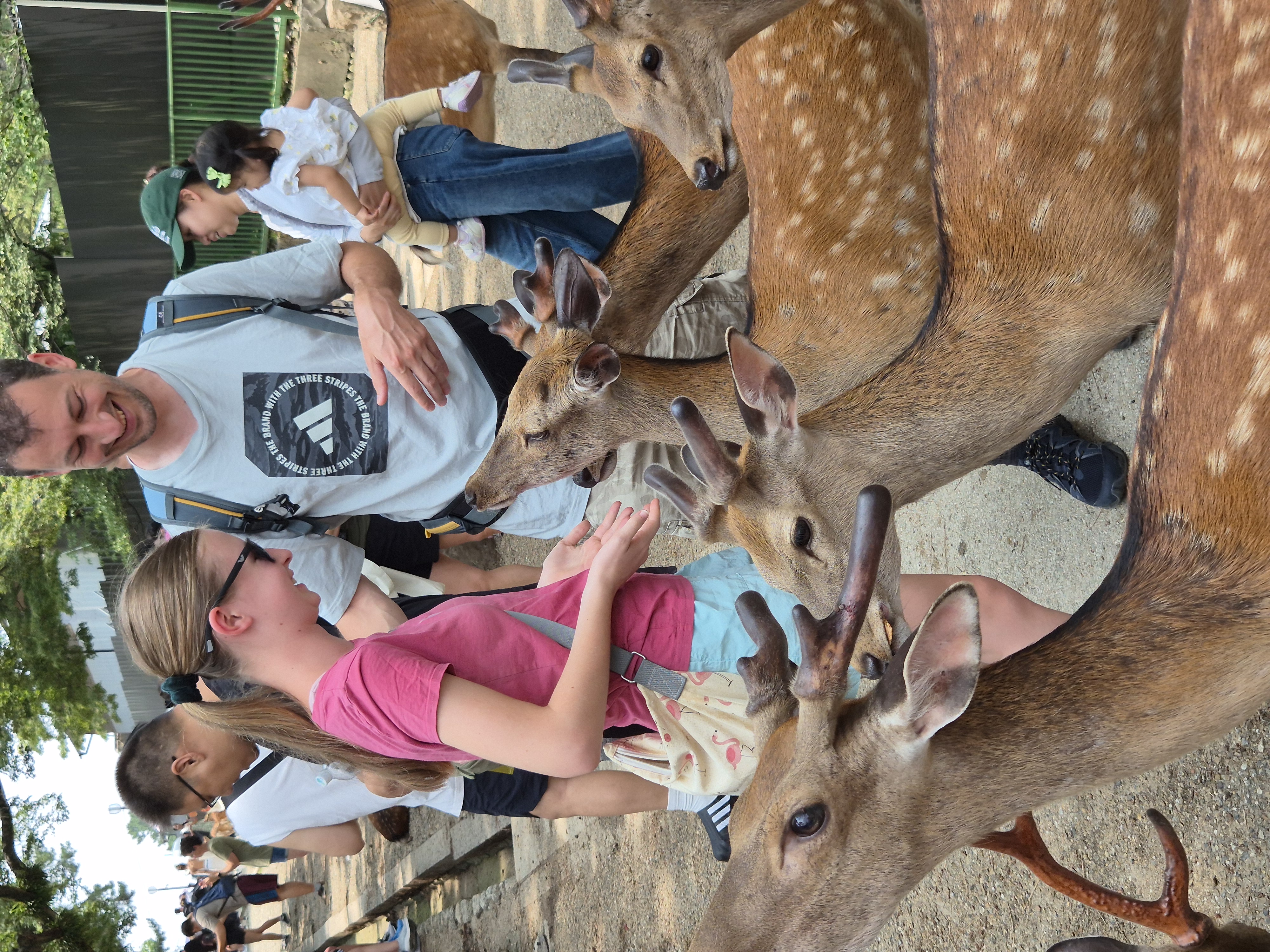 Danes smo se z vlakom odpeljali v park Nara. Prva srna, ki smo jo videli je hodila po sredini ceste. Tista je bila najbolj posebna saj je bilo težko verjeti, da se srna sprehaja kar na sredi ceste.