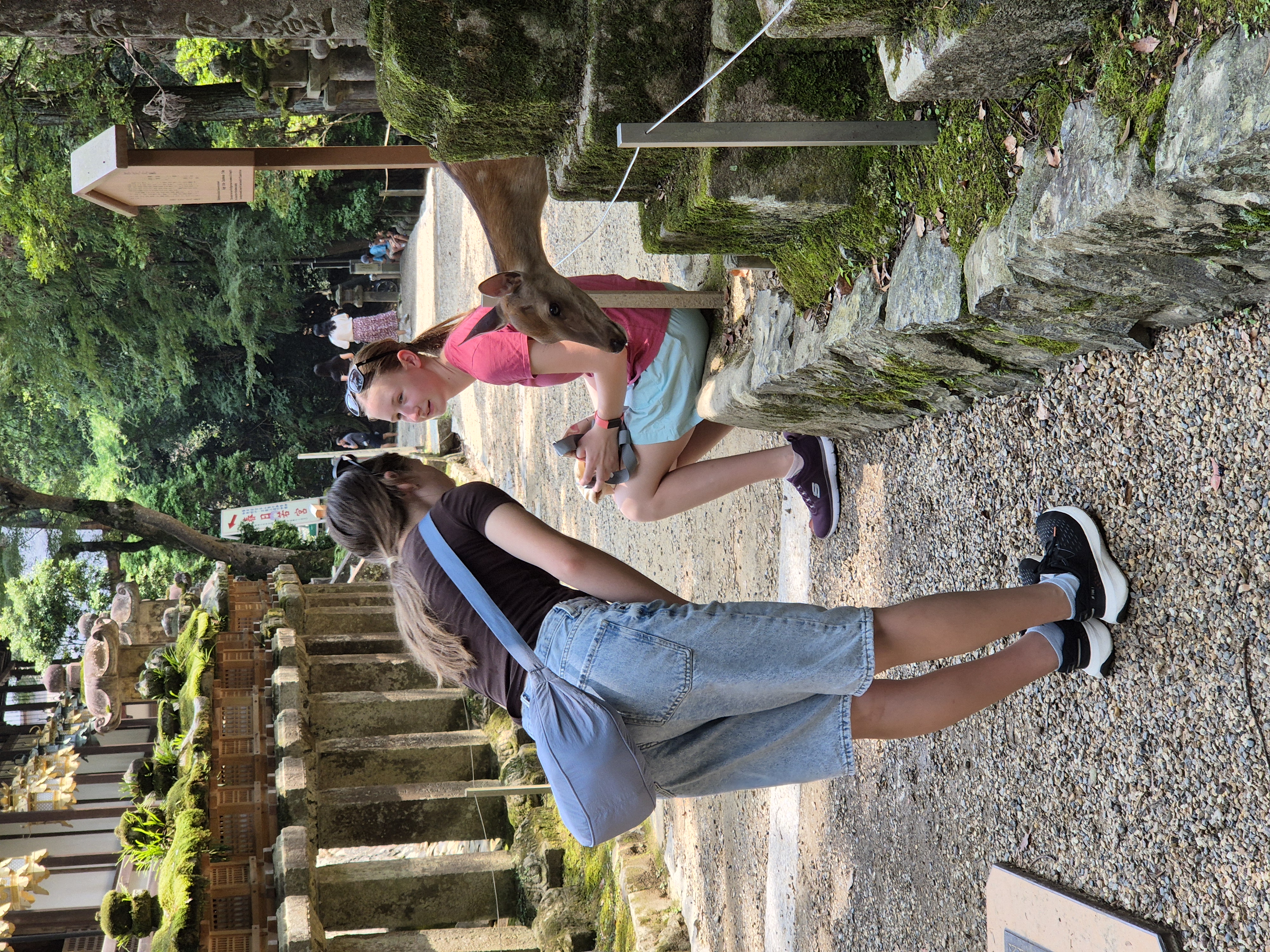Če želijo dobiti piškot se ti priklonijo. Malo smo se se sprehajali po parku, potem pa se sprehodili do manjšega templja. Bilo je prav prijetno saj je do tja delno vodila gozdna pot in je bilo manj vroče. Pa še pri templju so srne veliko bolj vljudne saj se ti vedno vljudno priklonijo. Tudi če jim daš majhen del piškota, se ti vljudno zahvalijo s priklonom.