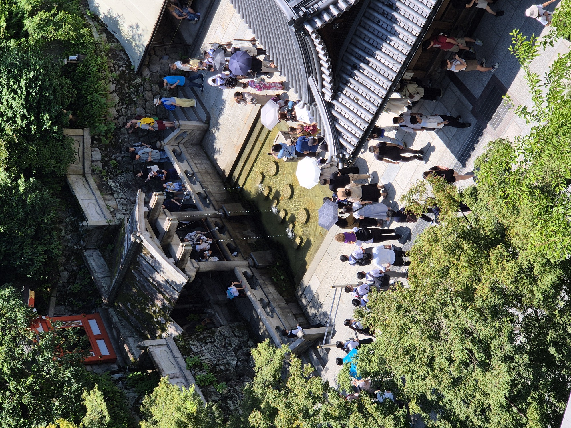 Z avtobusom smo se odpeljali na vzhod mesta, kjer v zavetju hribov stoji nekaj najbolj znamenitih kjotskih templjev. Že okrog 10 ure zjutraj je bilo krepko čez 30 stopinj, na nebu pa niti oblačka. Kljub temu, da je trenutno na Japonskem deževna doba, dežnika še nismo potrebovali.