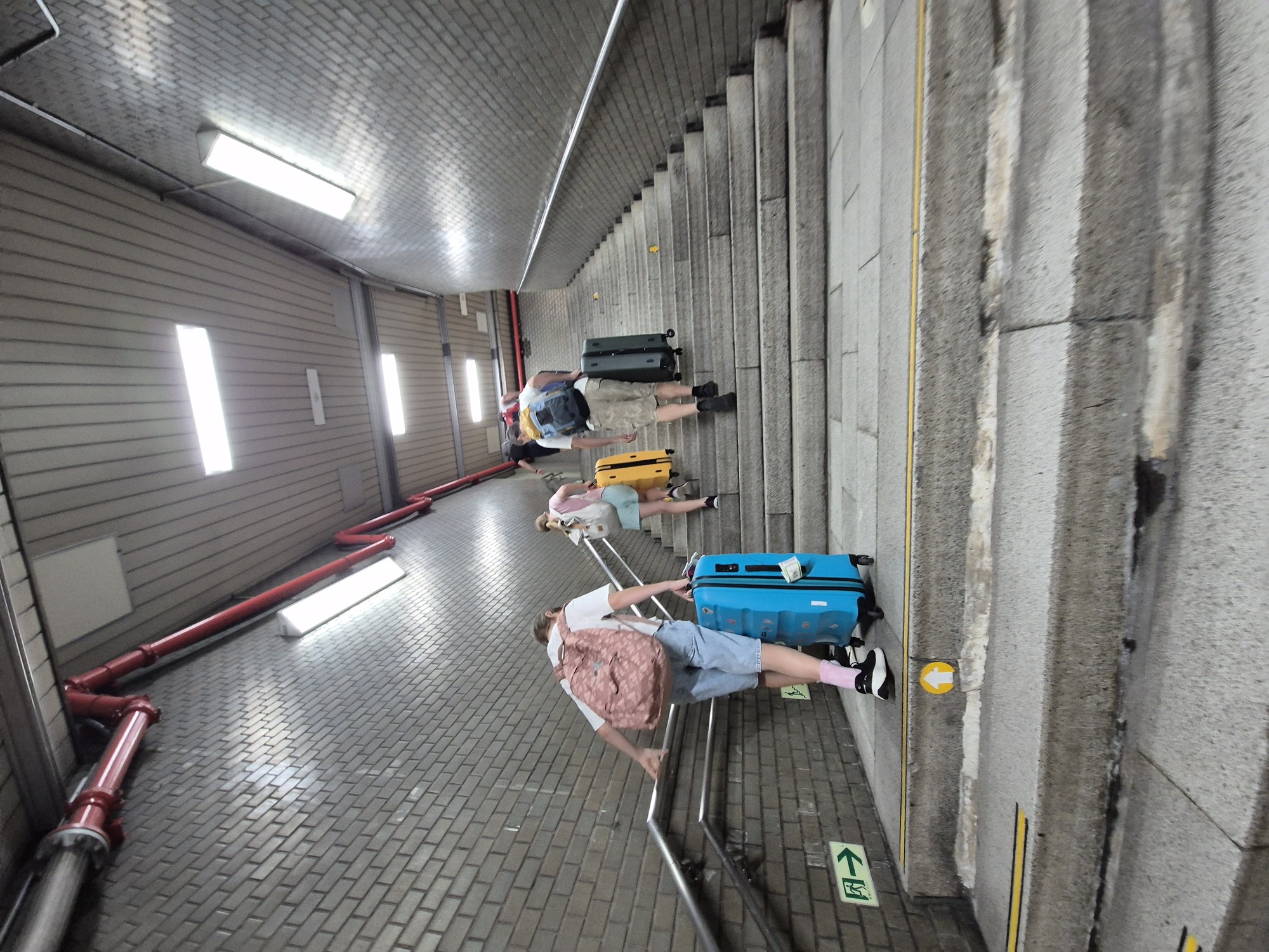 Ko smo prispeli, smo se še malo peljali s podzemno, potem pa smo se morali povzpeti ene 50 metrov po stopnicah (od tega so bile samo ene 10 metrov tekoče stopnice). U glavnem imeli smo odličen fitnes s kovčki.